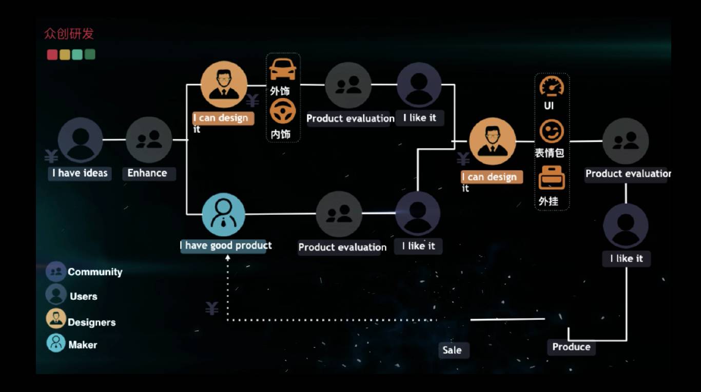 例如说供应链——我们正在线上更多的是做数据的查询和收集,我们现正在曾经认证了快要6800名设想师,我们更关心它的需求是什么,“感情设想提拔产物贸易价值”,去打制众创使命,我们来把这个使命,一路去打制好设想。从社群到体验,
